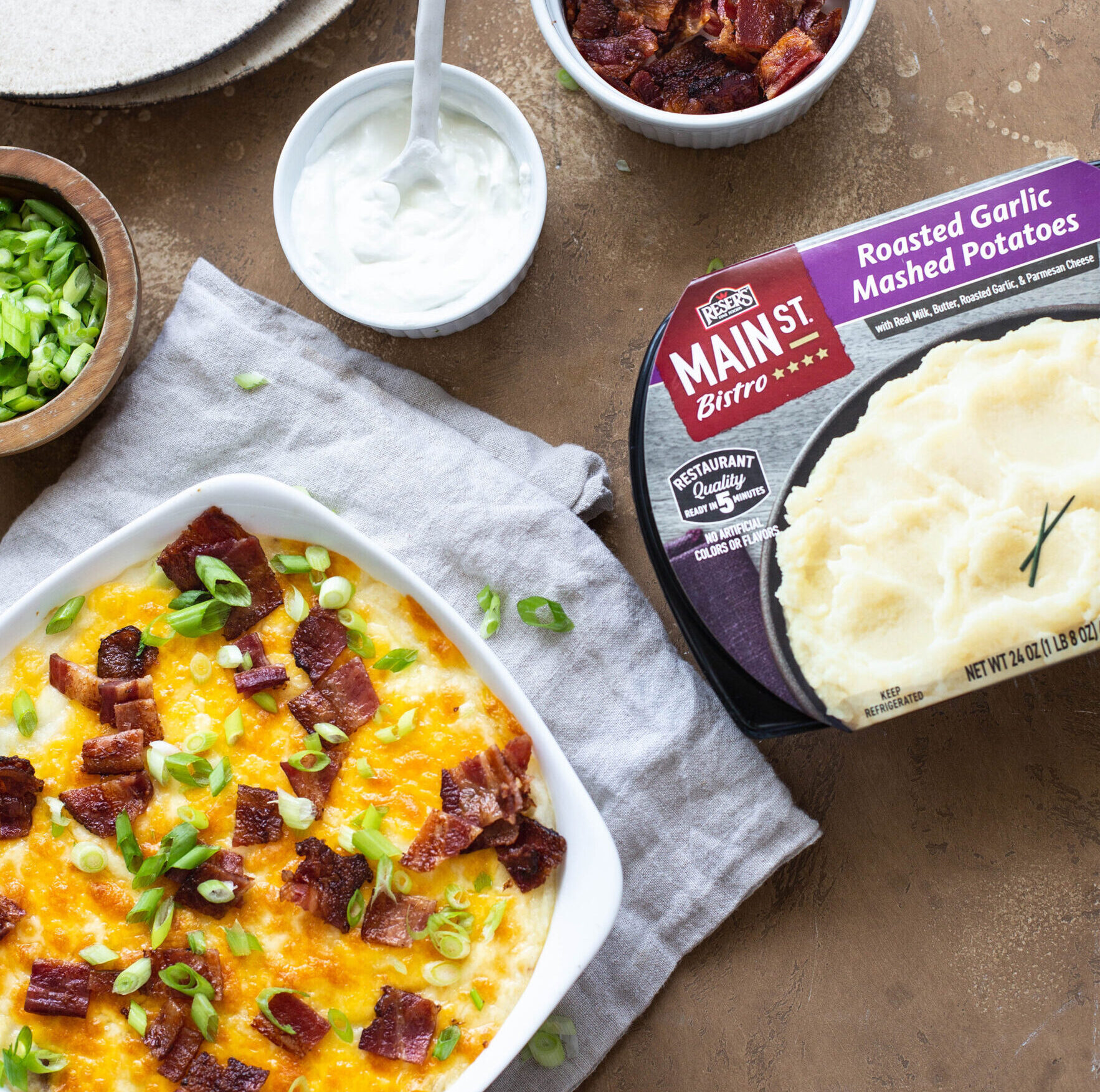 POTATOES, WHOLE MILK, WATER, BUTTER (SWEET CREAM [MILK], SALT), PARMESAN AND ROMANO CHEESE BASE (PARMESAN AND ROMANO CHEESE CONCENTRATE [GRANULAR CHEESE, PARMESAN CHEESE, AND ROMANO CHEESE {PASTEURIZED COW'S MILK, CULTURES, SALT, ENZYMES}, WATER, SALT, NATURAL FLAVOR, CITRIC ACID], WATER, SALT, WHEY, MODIFIED CORN STARCH, CULTURED BUTTERMILK [SKIM MILK, LACTIC ACID, CULTURES], NATURAL FLAVOR, CALCIUM CASEINATE, SODIUM CASEINATE, ONION POWDER, GARLIC POWDER), PARMESAN CHEESE (PART-SKIM MILK, CHEESE CULTURE, SALT, ENZYMES), SALT, CRUSHED GARLIC (GARLIC, CITRIC ACID), POTASSIUM SORBATE (PRESERVATIVE), DEHYDRATED ROASTED GARLIC.