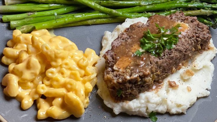 Comforting and hearty meatloaf with barbeque sauce and cheese? Yes please.
