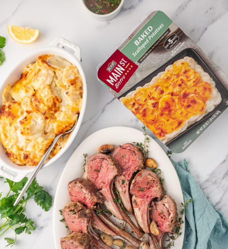 9. While the lamb is resting, heat Main St Bistro® Baked Scalloped Potatoes per package instructions.