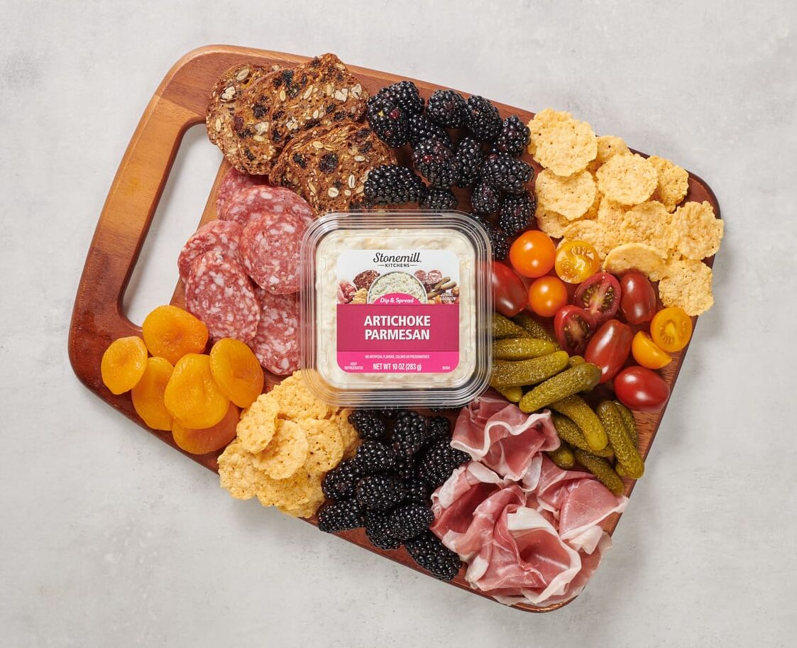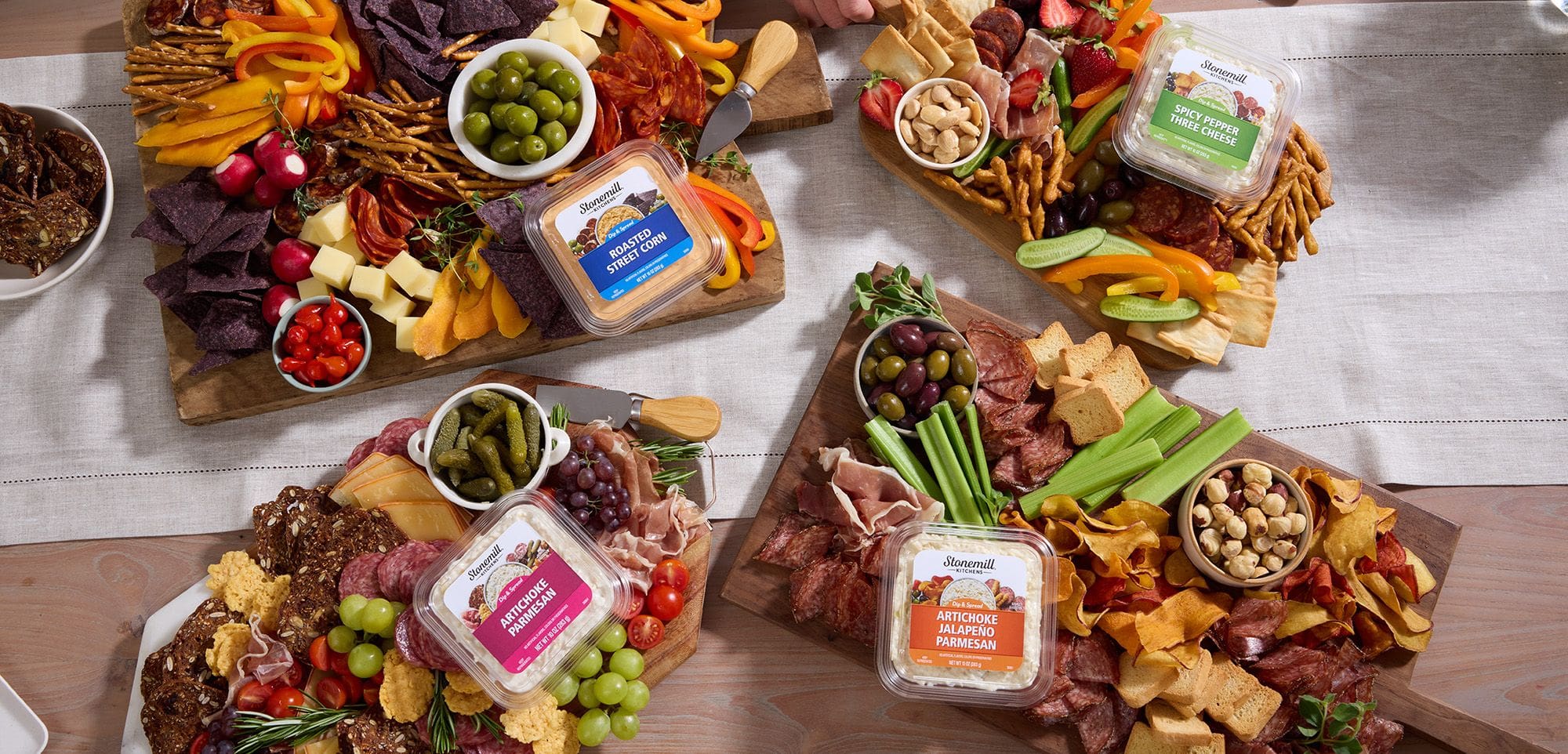 From hosting and entertaining to solo snacking, a charcuterie board peppered with Stonemill Kitchens® Premium Dips is a fresh and flavorful addition to any table. The best part? Just about anything goes! Build your own masterpiece with cheeses, fruits, nuts, crackers and an assortment of Stonemill Kitchens Premium Dips for a robust combination of big flavor and tasty bites that will keep everyone coming back for more.