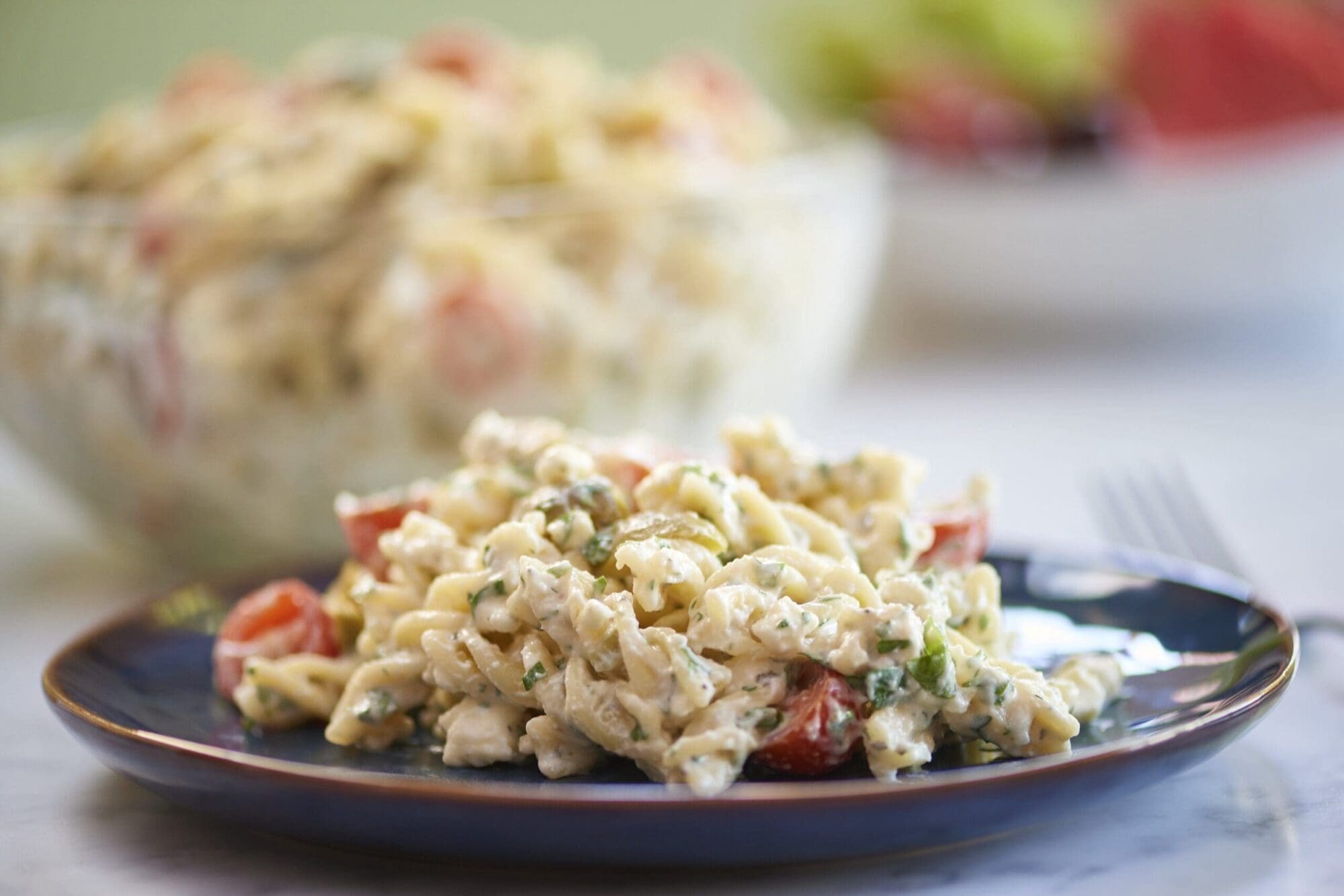Creamy Garlic Herb Feta and Chicken Pasta Salad