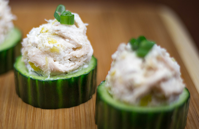 FILL each cucumber cup with 1 tablespoon of the chicken/dip mixture.