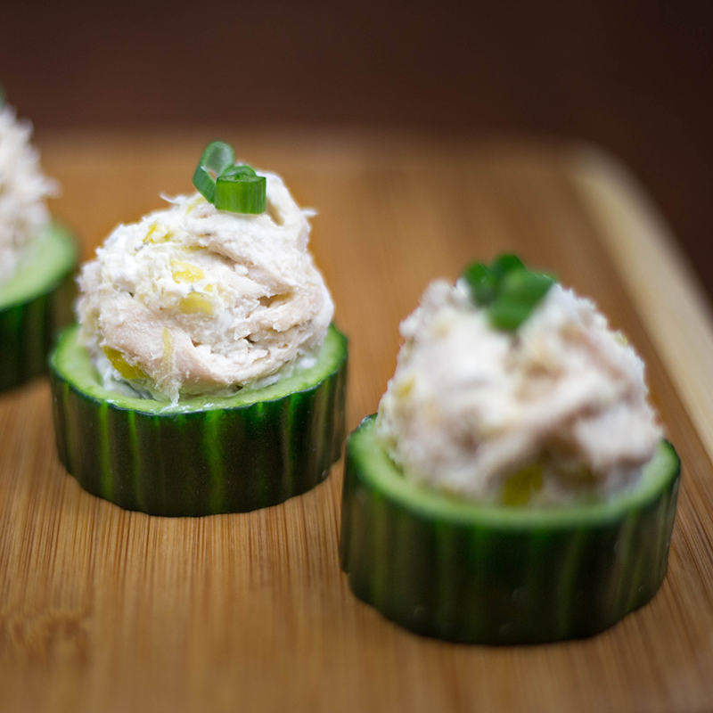 Crisp English cucumbers give a delicious “snap” to this tasty blend of rotisserie chicken and Stonemill Kitchens® Spicy Pepper & Three Cheese dip.